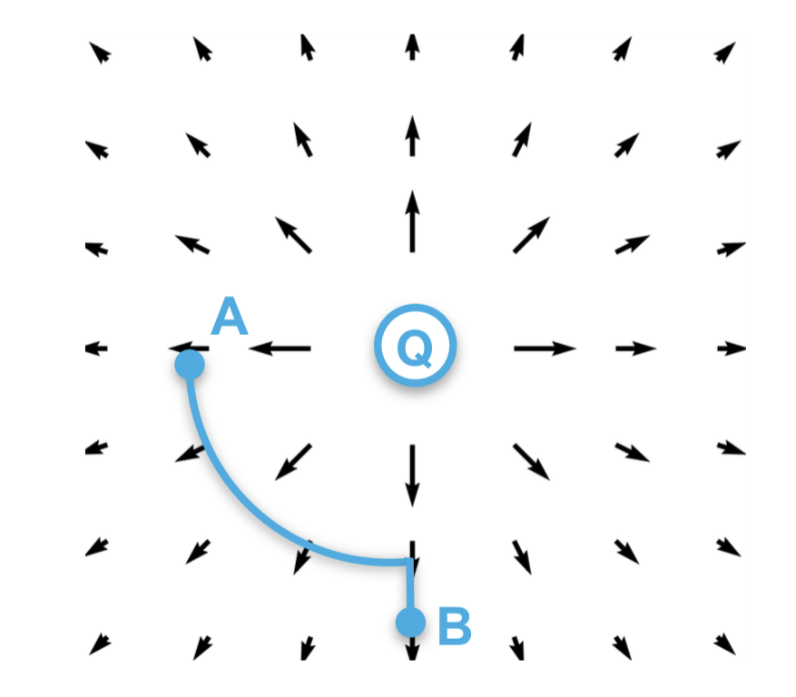 **c)** Ein Elektron hat eine höhere potentielle Energie bei B als bei A