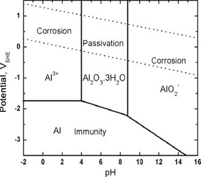 - Die Passiverungseigenschaft von Al geht kaputt bei pH ausserhalb von 4-8